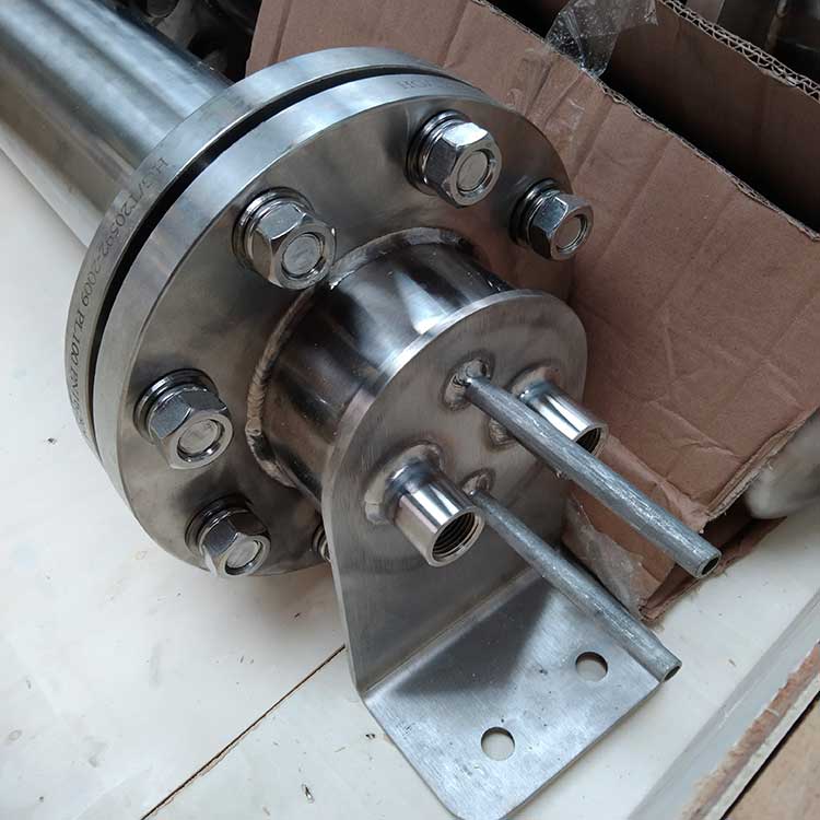 3.在不具備以除鹽水作為冷卻水的場(chǎng)合,可采用工業(yè)水作為冷卻水,內(nèi)螺旋管可以分解取出,便于維修和清洗。