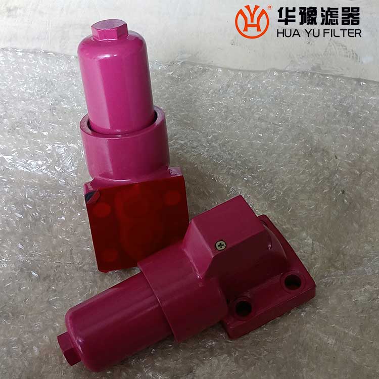 該過濾器的濾芯采用化纖過濾材質,具有過濾精度高,通油能力大,初始壓力損失小,納污量大等優點,并裝有壓差發訊器及旁通閥。當濾芯堵塞到進出油口壓差為0.35MPa時,便發出開關信號,此時應更換濾芯。如果不能馬上停機或無人來更換濾芯,裝在濾芯上部的旁通閥會自動開啟,以保護系統。
